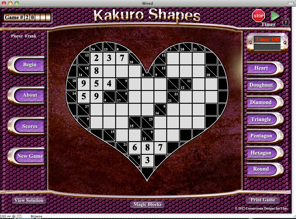 Kakuro Shapes 1.0 for Win - XP - Vista - Win 7 & 10 - size 56mb Download