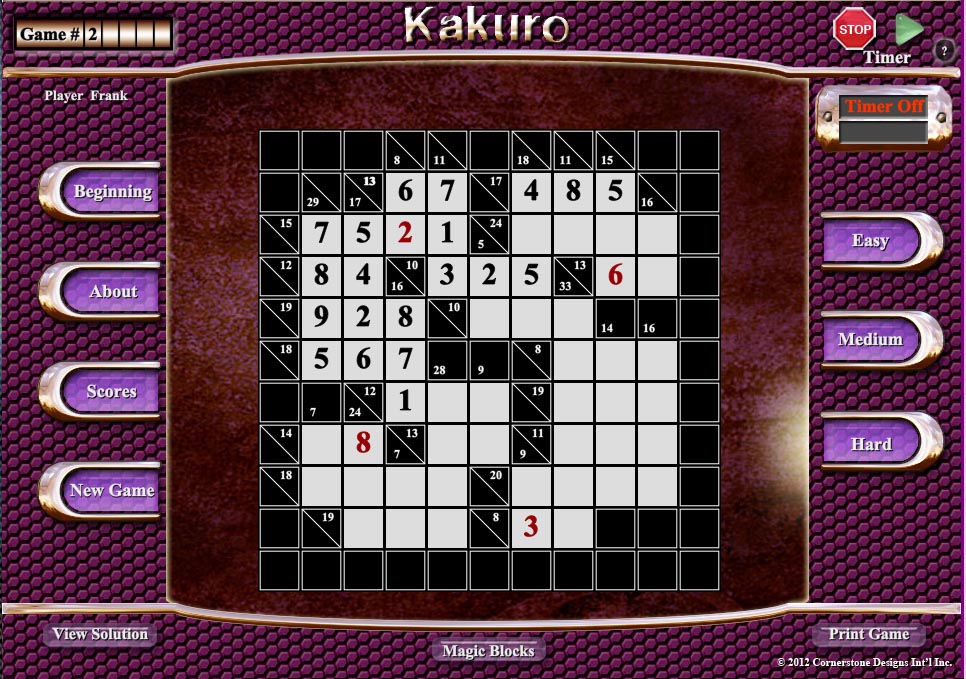 Kakuro 1.2 for Win - XP - Vista - Win 7 & 10 - size 50mb Download